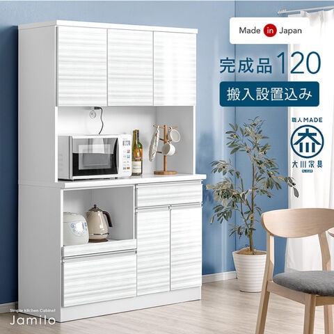 【搬入設置込】国産 食器棚 幅120 完成品 MOISS コンセント付き 大型レンジ対応 キッチンボード レンジ台 キッチンラック 【超大型】 33010167〔ホワイトウッド〕