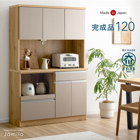 国産 食器棚 幅120 完成品 MOISS コンセント付き 大型レンジ対応 キッチンボード レンジ台 キッチンラック 玄関渡し 【超大型】 33010167〔オーク×グレージュ〕【予約】1月中旬※1/20までに出荷予定