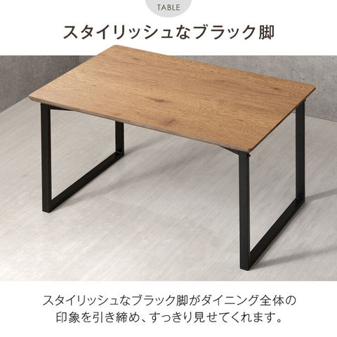 | 【テーブル】 天板:強化紙化粧繊維板 脚:アイアン 【チェア】 張地:PU、ファブリック(ポリエステル100%) 中材:ウレタンフォーム 脚部:スチール |