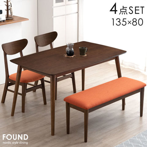 ダイニングセット 4点セット 4人掛け 135cm テーブル ダイニングテーブルセット ダイニングチェア チェア 4人 【超大型】【後払/時間指定NG】 〔ブラウン【座面:オレンジ】〕33010182【予約】3月上旬※3/10までに出荷予定