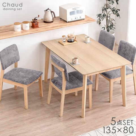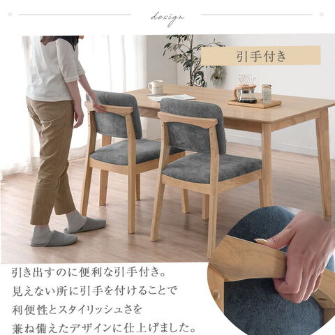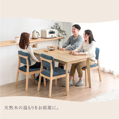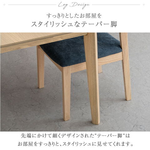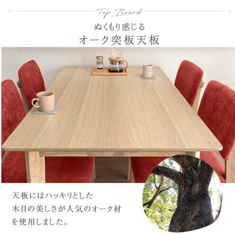 | 【テーブル】 天板:オーク突板 脚部:脚:ラバーウッド 表面加工:ウレタン樹脂塗装 【チェア】 脚部:ラバーウッド 中材:ウレタン 張地:ファブリック |