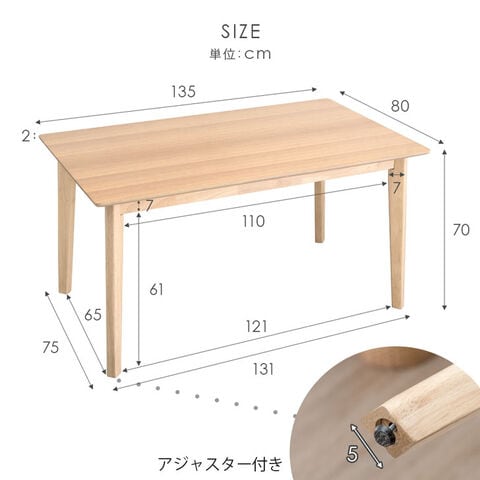 | 【テーブル】外寸:幅135×奥行80×高さ70cm 【チェア】45×52×81cm 座面高:43cm |