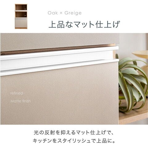・食器やストックをすっきり整頓 ・蓋付き家電の収納にぴったりなスライド棚 ・蒸気や熱を吸収するモイス付き ・引き出しは奥の物も取り出しやすいフルオープンスライドレール使用 ・選べる2タイプ ┗清潔な印象のホワイトウッド、ホワイト 高級感あるハイグロス仕上げ ┗あたたかみある木目調のオーク×グレージュ 上品なマット仕上げ ・日本一の家具産地 大川産 |