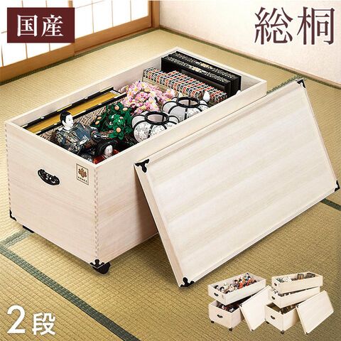 国産 ひな人形収納 総桐 完成品 2段 幅42 キャスター付き 防虫 防湿 単品 雛人形 収納 ケース 収納ボックス 押し入れ収納 衣類収納 収納箱 保管箱 箱 木箱 桐 桐箱 親王 平 三段 五段 七段 対応 日本製 35010107〔2段〕