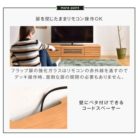 | 前板:プリント化粧板、3mmガラス ルーバー(加飾部):アルダー無垢材 天板:強化紙プリント化粧板 側板・内装:プリント化粧板 |