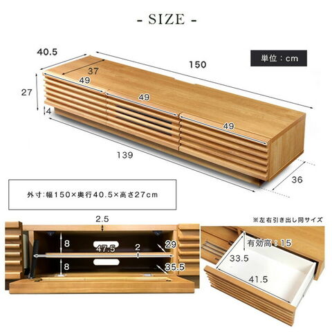 テレビ台 幅150 アルダー無垢 日本製 完成品 国産 木製 TV台 テレビボード ロータイプ TVボード 32インチ 42インチ ナチュラル ブラウン 北欧 アルダー 無垢 3870000821〔ナチュラル〕