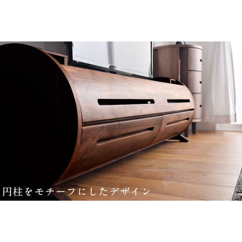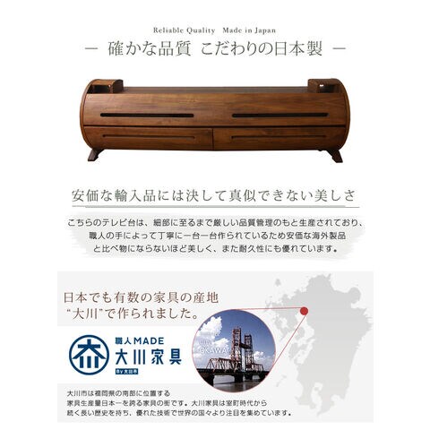 【搬入設置込み】日本製 テレビ台 テレビラック 完成品 幅150cm アルダー無垢材 円柱 大川家具 ウォールナット 【超大型】 99901205