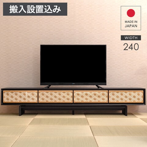 【搬入設置込み】テレビ台 幅240 組子調デザイン 国産 大川家具 完成品 テレビボード テレビラック TVラック ローボード 日本製 無垢 天然木 オーク 和風 99901228〔楢×練色〕