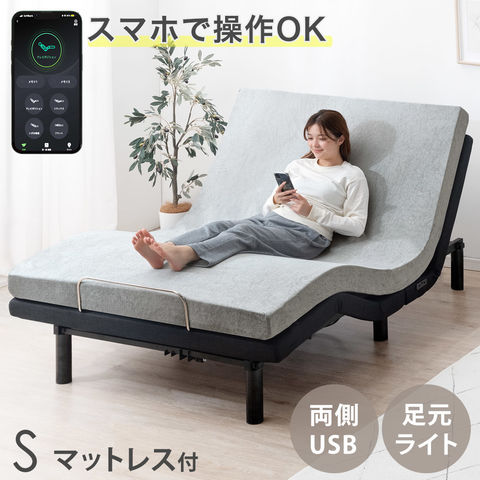 スマホで操作OK 電動ベッド シングル 高反発 マットレス 付 USBポート 目覚し機能 足元照明LED付 リクライニングベッド リクライニング ベッド シングルベッド 4190003011〔マットレス:グレー(パイル)〕【予約】2月上旬※2/10までに出荷予定