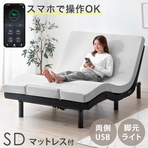 スマホで操作OK 電動ベッド セミダブル 高反発 マットレス 付 USBポート 目覚し機能 足元照明LED付 リクライニングベッド リクライニング ベッド ウレタン 4190003112〔マットレス:グレー(メッシュ)〕