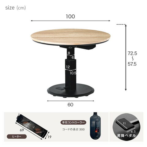 楽らく昇降! ダイニングこたつ 昇降式こたつ 単品 速暖 カーボンヒーター 手元コントローラー 円形 4人掛け 幅100cm こたつ テーブル ハイタイプ 高脚こたつ 高さ調節こたつ おしゃれ 41900147〔ライトブラウン〕