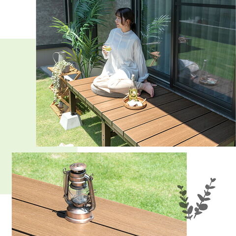 ・長く使える高い耐久性 ・リアルな木目デザイン ・水洗いのみでお手入れ簡単 ・雨風に強い アルミフレーム ・高さ調整OK!アジャスター付き ・暮らしに合わせて拡張OK |