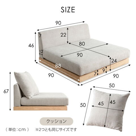 | サイズ | 外寸:幅90×奥行90×高さ67cm(座面高:24cm) クッション:幅50×高さ50cm |