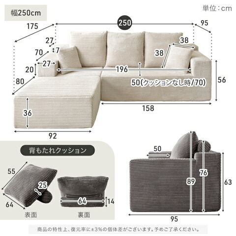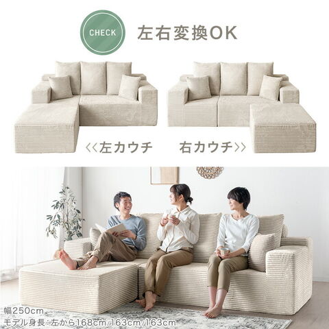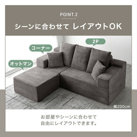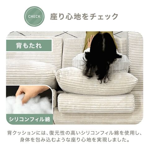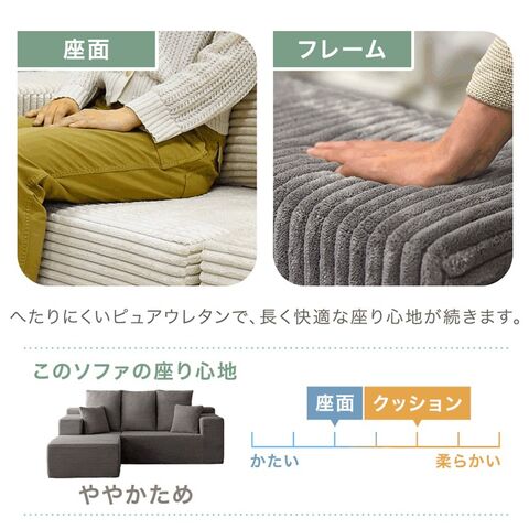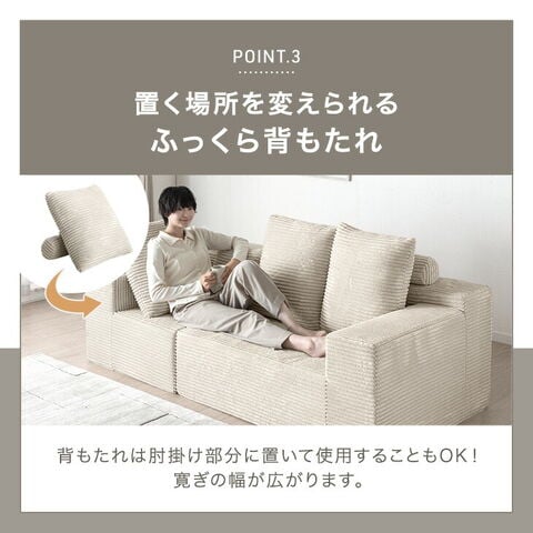 ・さらふわタッチ コーデュロイ生地 ・シーンに合わせてレイアウトOK ・置く場所を変えられるふっくら背もたれ ・ゆったり寛げる 幅広アームレスト |