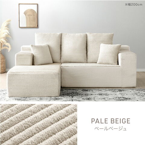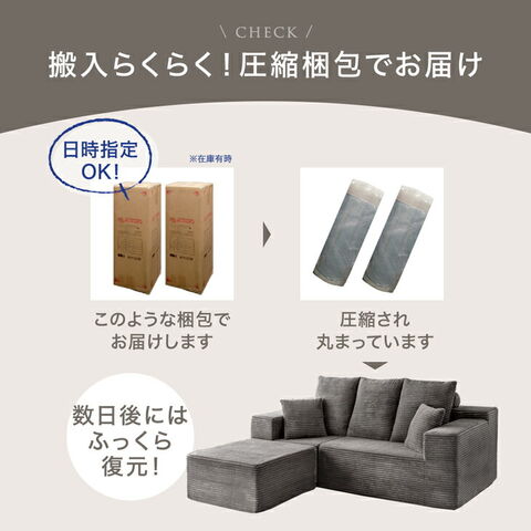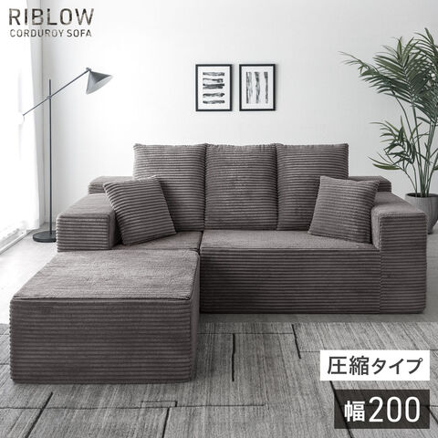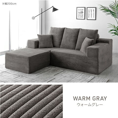 コーデュロイ カウチソファ 200cm 3人掛け 圧縮 ソファ フロアソファ コーナーソファ リビングソファ ソファー カウチ 肘付き クッション 北欧 おしゃれ 滑り止め 42500130〔ウォームグレー〕【予約】1月下旬※1/31までに出荷予定