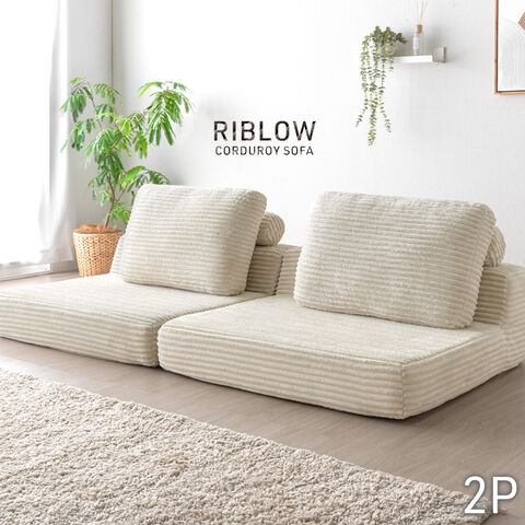 コーデュロイ ローソファ 2人掛け 圧縮 ソファ フロアソファ リビングソファ ソファー ローソファー 布 クッション ロータイプ sofa 北欧 おしゃれ 99907296〔ペールベージュ〕
