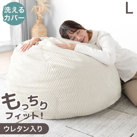 RENEW もっちりFIT!高&低反発ウレタン入 ビーズクッション L(80cm)洗える カバー コーデュロイ ビーズソファ クッションソファ 座椅子 ウレタン 大きい かわいい 43300011〔ミルキーホワイト〕【予約】12月下旬※12/31までに出荷予定