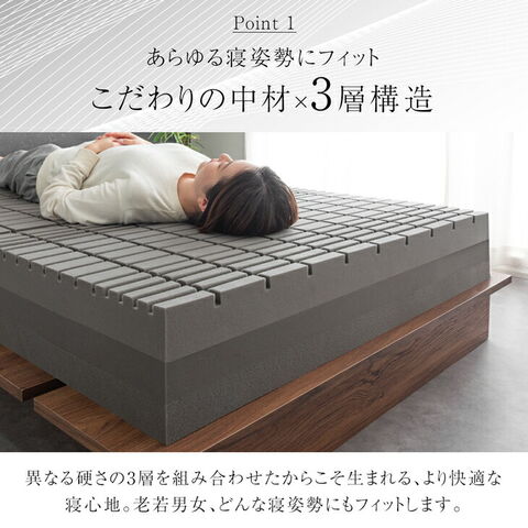 | 備考 | ※配送は全て宅配便(1人)での玄関渡しとなります。 ※マットレスは約1~2日で復元します。気温や温度により3~14日かかる場合もあります。 ※圧縮梱包のマットレスについて、ウレタンフォームの感温性(反発弾性フォームは温度が高くなると柔らかくなり、低くなると硬さが高くなる性質)により冬場、寒いところで復元させると、復元に時間がかかります。又、部分的に復元するタイミングが異なる場合がございます。室温が18度以上の部屋に半日くらいおくと、回復がしやすくなります。 ※開封時の臭いは新品のウレタン特有のもので無害です ※生産過程でウレタンフォームの重量に若干の個体差が生じる場合があります。 ※当商品は圧縮梱包を採用しています。開封時の膨張によりカバーのファスナーが破損することを防ぐため、あらかじめ10cmほどファスナーを開けています。開封後はお手数ですがファスナーを閉めてご使用ください。 ※布団乾燥機・電気毛布など、高温になるもののそばでのご使用はお控えください。変形のおそれがあります。 ※ページ内のイメージはダブルサイズを使用しております。 ※開封直後は、感触が柔らかく感じられることがあります。時間とともに馴染んできます。 ※ページ内のイメージはダブルサイズを使用しております。 |