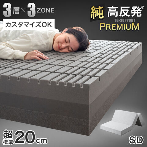【3層×3ゾーン】寝心地フルカスタム 極厚 20cm プレミアム セミダブル 純高反発マットレス 3つ折り 3層構造 メッシュ ニット 洗えるカバー 敷布団 寝具 おしゃれ 43300149〔ブラック〕