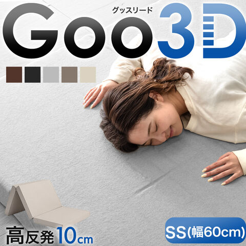 【即納】 Goo3D《グッスリード》 高反発 セミシングル 幅60cm マットレス 三つ折り 10cm 3D 3ゾーン 体圧分散 洗えるカバー ウレタン 硬め 敷布団 車中泊 新生活 43300153〔グレー(パイル)〕