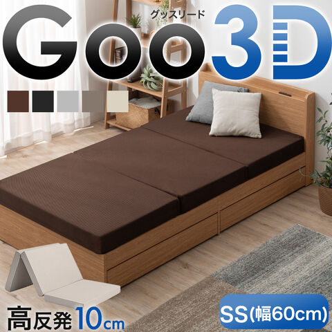 【即納】 Goo3D《グッスリード》 高反発 セミシングル 幅60cm マットレス 三つ折り 10cm 3D 3ゾーン 体圧分散 洗えるカバー ウレタン 硬め 敷布団 車中泊 新生活 43300153〔ブラウン(メッシュ)〕