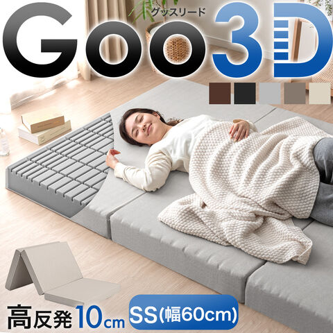 Goo3D《グッスリード》 高反発 セミシングル 幅60cm マットレス 三つ折り 10cm 3D 3ゾーン 体圧分散 洗えるカバー ウレタン 硬め 敷布団 車中泊 新生活 43300153〔グレー(メッシュ)〕