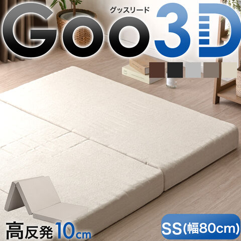 【即納】 Goo3D《グッスリード》 高反発 セミシングル 幅80cm マットレス 三つ折り 10cm 3D 3ゾーン 体圧分散 洗えるカバー ウレタン 硬め 敷布団 車中泊 新生活 43300154〔エクルベージュ(パイル)〕