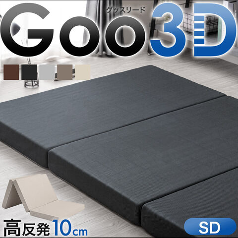 Goo3D《グッスリード》 高反発 セミダブル マットレス 三つ折り 10cm 3D 3ゾーン 体圧分散 洗えるカバー ウレタン 硬め 敷布団 車中泊 新生活 43300156〔チャコールグレー(メッシュ)〕