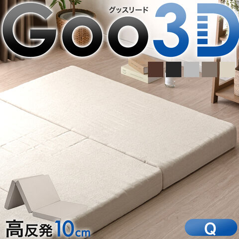 【即納】 Goo3D《グッスリード》 高反発 クイーン マットレス 三つ折り 10cm 3D 3ゾーン 体圧分散 洗えるカバー ウレタン 硬め 敷布団 車中泊 新生活 43300158〔エクルベージュ(パイル)〕
