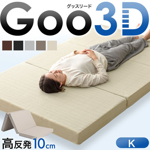 【即納】 Goo3D《グッスリード》 高反発 キング マットレス 三つ折り 10cm 3D 3ゾーン 体圧分散 洗えるカバー ウレタン 硬め 敷布団 車中泊 新生活 43300159〔エクルベージュ(メッシュ)〕