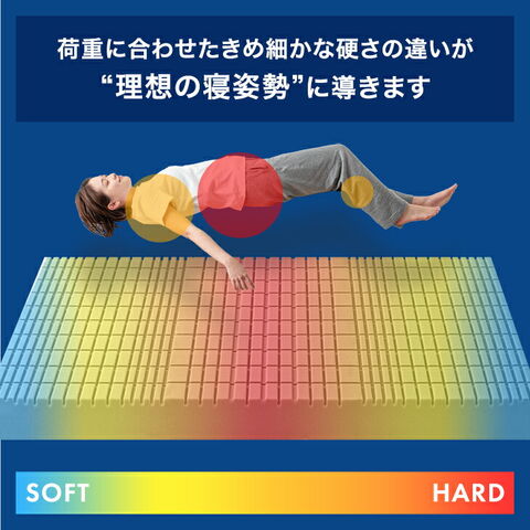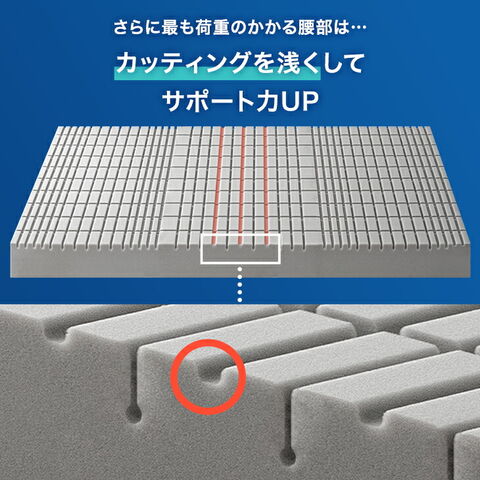目覚めが変わる。“ワンランク上”の高反発 Goo3D《グッスリード》マットレス ・さらに安定した寝心地【超極厚】20cmタイプ ・身体に合わせて設計された当店独自フォーム ・優れた体圧分散性で負担の少ない自然な寝姿勢に ・カッティングの幅と深さを部位ごとに変更 ┗負担の大きい腰部をしっかり支える設計に ・1年を通して快適に使える 優れた通気性 ・腰をしっかり支える設計 ・選べる2タイプ ┗取り扱いが楽な三つ折りタイプ ┗寝心地重視の一体型タイプ ・カバーの生地は選べる2タイプ ┗優しい肌触り パイル生地 ┗ムレずに快適 メッシュ生地 ・世界基準の安全性 エコテックス認証生地 ・着脱しやすいU字ファスナー ・シックハウス症候群の原因物質7種を検査で安心 ・反発弾性までしっかり検査した高品質ウレタン ・不純物を含まず、においを軽減させた純高反発(R) ・ISO9001認可工場での生産 |
