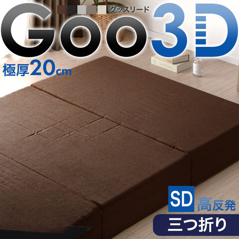【即納】 超極厚20cm ワンランク上の 高反発 Goo3D《グッスリード》 三つ折り マットレス セミダブル 3D 3ゾーン 洗えるカバー 厚い 硬め 敷布団 43300161〔ブラウン(パイル)〕