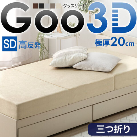超極厚20cm ワンランク上の 高反発 Goo3D《グッスリード》 三つ折り マットレス セミダブル 3D 3ゾーン 洗えるカバー 厚い 硬め 敷布団 43300161〔エクルベージュ(パイル)〕