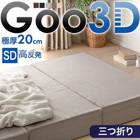 超極厚20cm ワンランク上の 高反発 Goo3D《グッスリード》 三つ折り マットレス セミダブル 3D 3ゾーン 洗えるカバー 厚い 硬め 敷布団 43300161〔グレージュ(パイル)〕