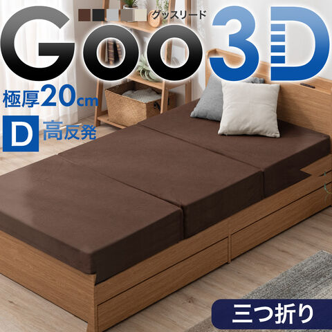 超極厚20cm ワンランク上の 高反発 Goo3D《グッスリード》 三つ折り マットレス ダブル 3D 3ゾーン 洗えるカバー 厚い 硬め 敷布団 43300162〔ブラウン(メッシュ)〕