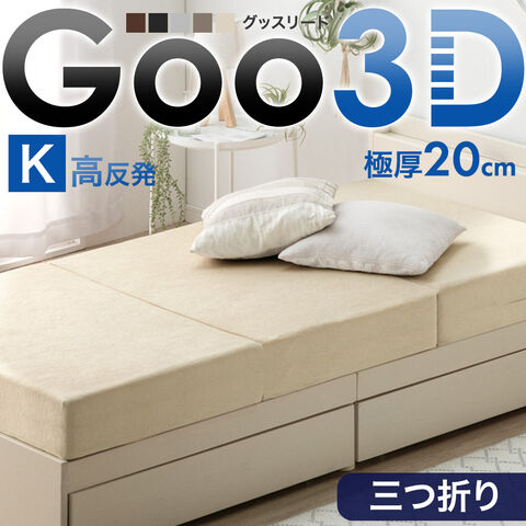 超極厚20cm ワンランク上の 高反発 Goo3D《グッスリード》 三つ折り マットレス キング 3D 3ゾーン 洗えるカバー 厚い 硬め 敷布団 43300164〔エクルベージュ(パイル)〕