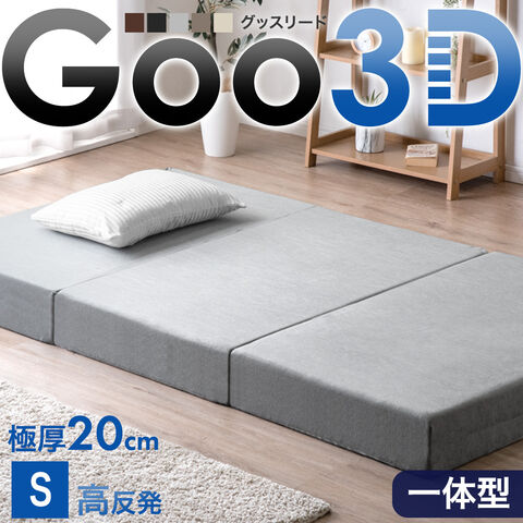 超極厚20cm ワンランク上の 高反発 Goo3D《グッスリード》 一体型 マットレス シングル 3D 3ゾーン 洗えるカバー 厚い 硬め 敷布団 43300165〔グレー(パイル)〕