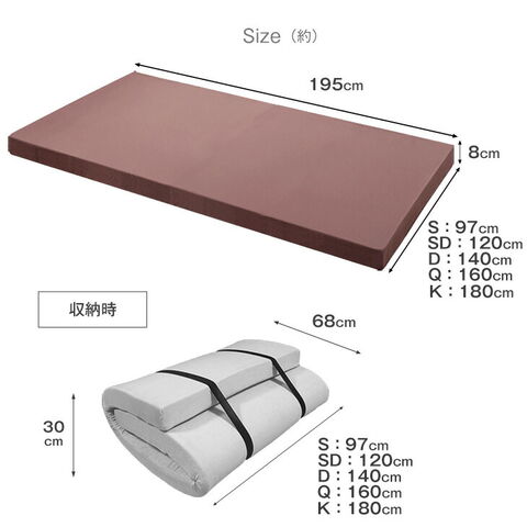 | 側生地:ポリエステル100% 中材:高反発ウレタンフォーム(密度22D <22kg/m3>、170N) |