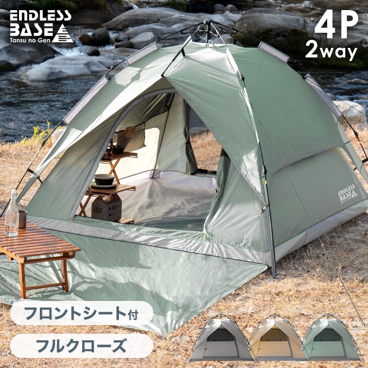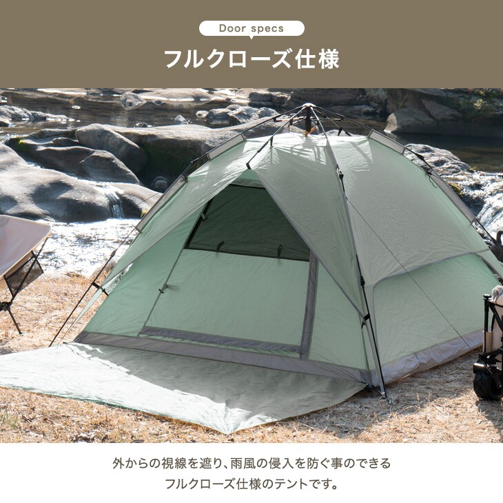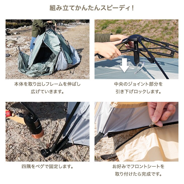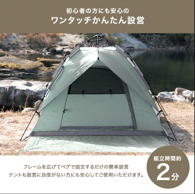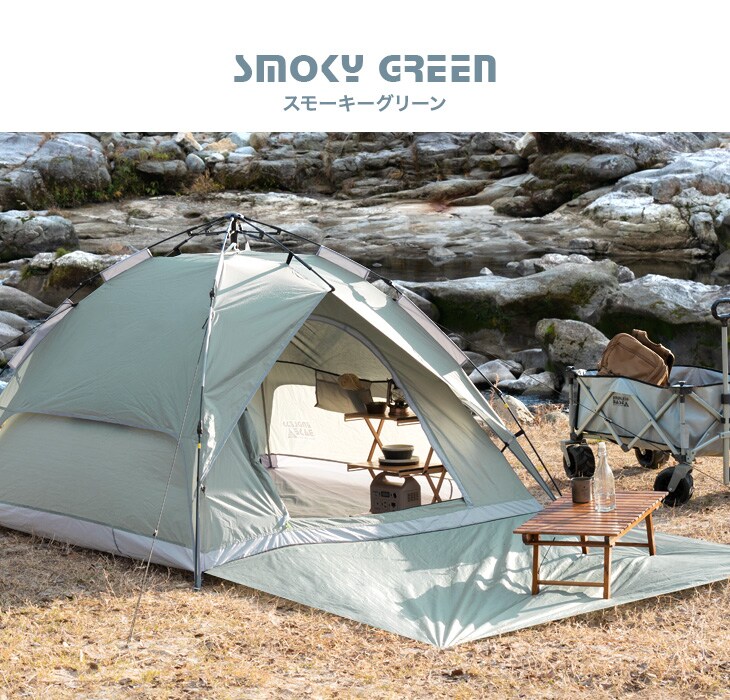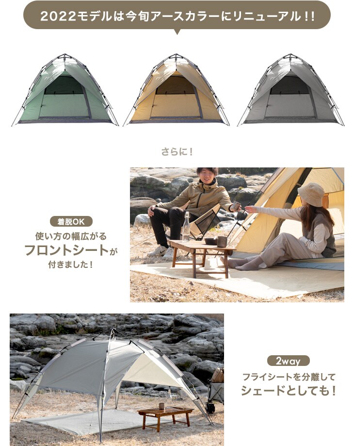 【即納】 【1年保証】ワンタッチテント フロントシート付 2way ポップアップテント 幅210cm ワンタッチテント テント ポップアップテント 43500001〔スモーキーグリーン〕