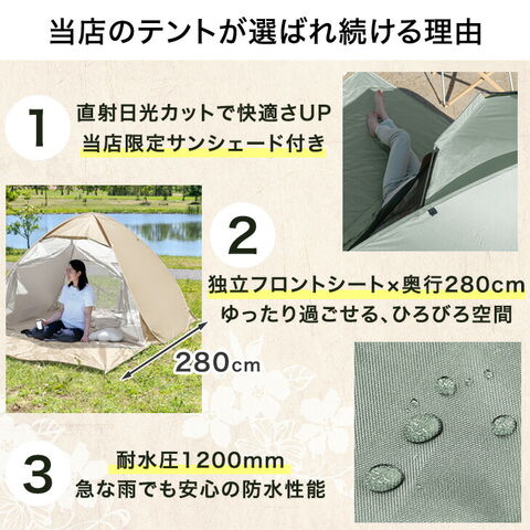 【即納】 《めざましテレビで紹介》 【1年保証】 当店限定サンシェード付 ポップアップテント 超ワイド250cm 組立ワンタッチ 遮光 遮熱 ワンタッチテント アウトドア テント 4350000339〔アッシュグレー〕