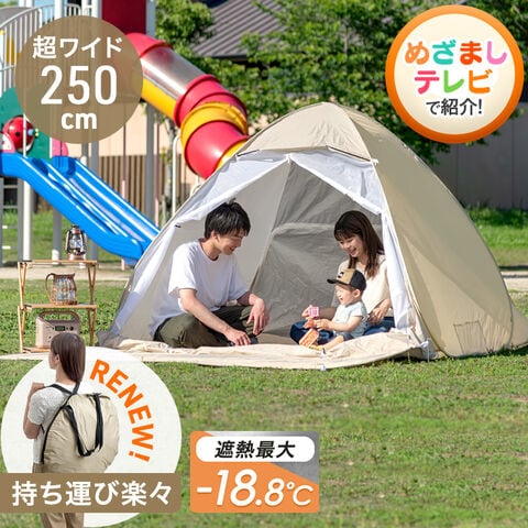 【即納】 《めざましテレビで紹介》 【1年保証】 当店限定サンシェード付 ポップアップテント 超ワイド250cm 組立ワンタッチ 遮光 遮熱 ワンタッチテント アウトドア テント 43500003〔エクルベージュ〕