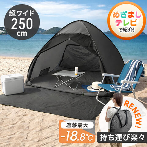 【即納】 《めざましテレビで紹介》 【1年保証】 当店限定サンシェード付 ポップアップテント 超ワイド250cm 組立ワンタッチ 遮光 遮熱 ワンタッチテント アウトドア テント 43500003〔チャコールグレー〕