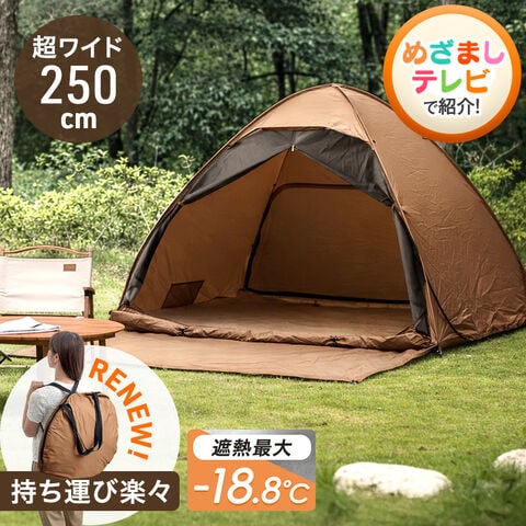 【即納】 《めざましテレビで紹介》 【1年保証】 当店限定サンシェード付 ポップアップテント 超ワイド250cm 組立ワンタッチ 遮光 遮熱 ワンタッチテント アウトドア テント 43500003〔アーモンドブラウン〕