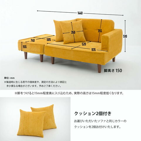 | 材質:表地=ポリエステル91%、レーヨン9% 構造部材:スチールパイプ、ポケットコイルスプリング 生地:コーデュロイ | ||