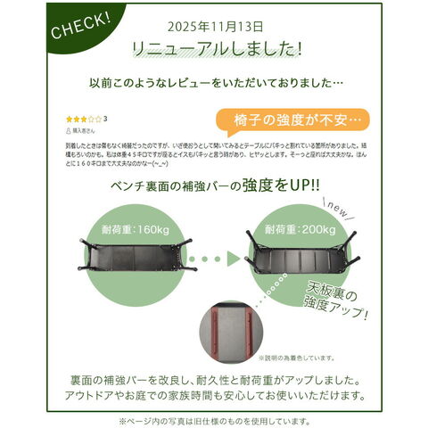 | 【テーブル】30kg 【ベンチ】200kg(1脚あたり) |