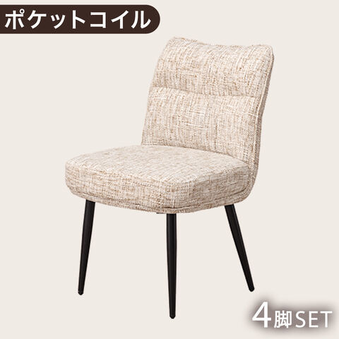 へたりにくい! ポケットコイル ダイニングチェア 4脚セット 肘なし スチール脚 ダイニング チェア デスクチェア リビング 食卓 ファブリック シンプル アイアン おしゃれ 北欧 99900161〔ミルクベージュ〕