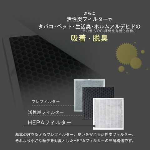 ・PM2.5や花粉・浮遊アレル物質を逃さずキャッチするHEPAフィルター