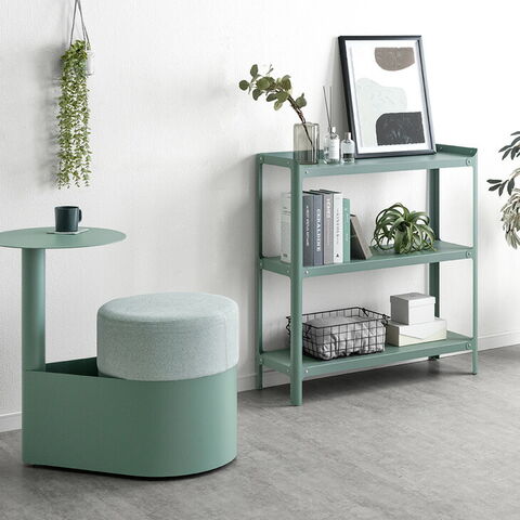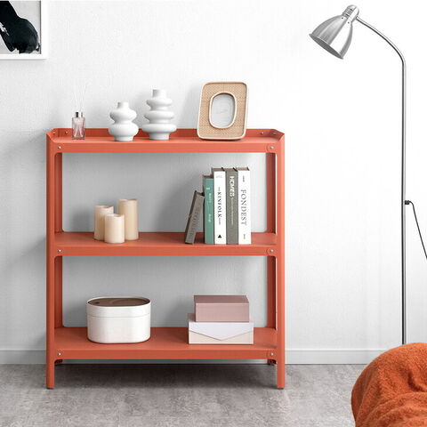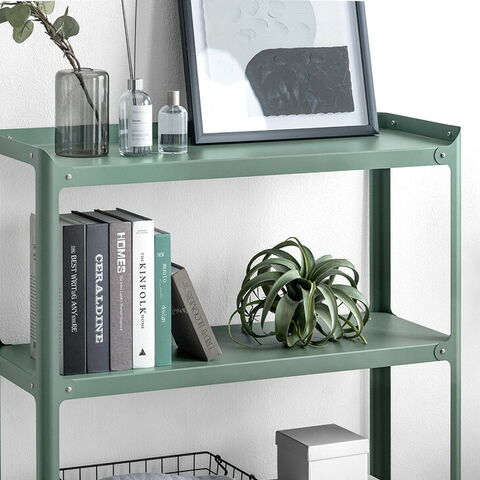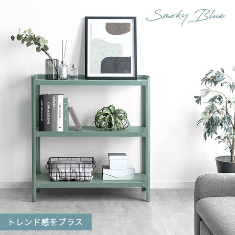 3段 オープンシェルフ スリム オープンラック スチール ブックシェルフ ディスプレイ キャビネット 本棚 収納棚 薄型 かわいい アイアン リビング ベッドルーム ランドリー 48100045〔スモーキーブルー〕