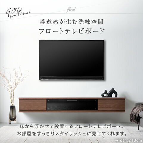 フロート テレビ台 壁掛け 完成品 国産 180cm テレビボード フロートタイプ テレビラック TVラック 32~ 65型 180 収納 日本製 北欧 【超大型】48100046〔ウォールナット〕