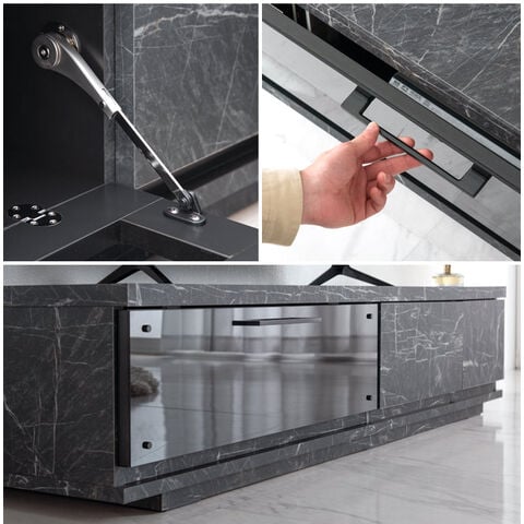 【国産/大川家具】 テレビボード 150 大理石調 日本製 完成品 テレビ台 鏡面 木製 テレビボード ローボード 32型 40型 42型 60型 ブラック ホワイト 49100019〔ブラック〕
